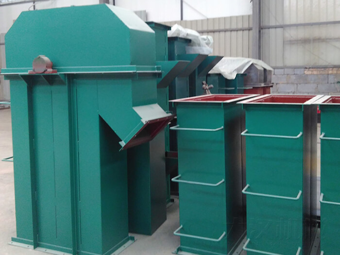 形成回料多的緣由有以下幾點: 1、機頭出口的卸料舌板裝置不適宜,舌板距料斗卸料位置太遠,會形成回料。應及時的調整舌板位置,防止回料。 2、料斗運轉速渡過快提升機提升不同的物料,料斗運轉的速度有別:普通提升枯燥的粉料和粒料時,速度約為1~2m/s;提升塊狀物料時,速度為0.4~0.6m/s;提升濕潤的粉料和粒料時,速度為0.6~0.8m/s。速渡過大,卸料提早,形成回料。這時應依據提升的物料,恰當降低料斗的速度,防止回料。