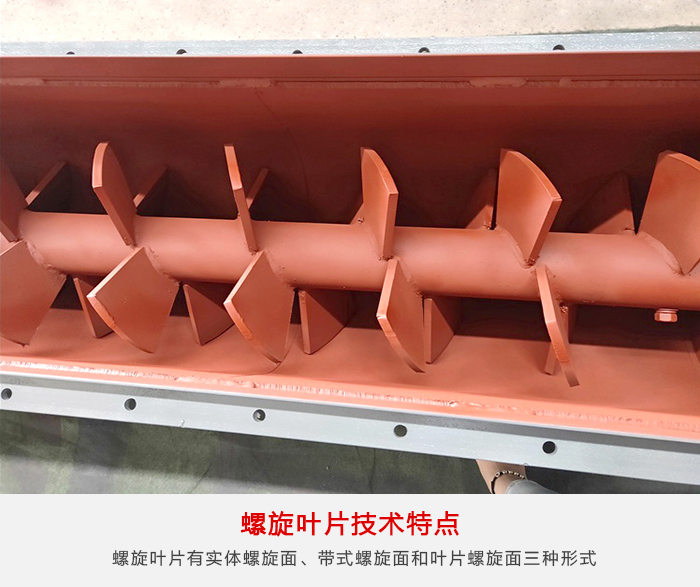 螺旋輸送機(jī)一般由輸送機(jī)本體、進(jìn)出料口及驅(qū)動裝置三大部分組成;螺旋輸送機(jī)的螺旋葉片有實(shí)體螺旋面、帶式螺旋面和葉片螺旋面三種形式,其中,葉片式螺旋面應(yīng)用相對較少,主要用于輸送粘度較大和可壓縮性物料,這種螺懸面型,在完成輸送作業(yè)過程中,同時(shí)具有并完成對物料的攪拌、混合等功能。