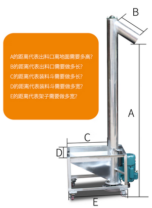 垂直螺旋輸送機(jī)的高度是指進(jìn)料口到出料口的距離,對(duì)于在高處或小筒倉(cāng)(8米高度差)中運(yùn)輸產(chǎn)品,當(dāng)需要增加提升高度時(shí),通常需要中間吊架或穩(wěn)定器軸承來消除過度的螺旋偏轉(zhuǎn)。