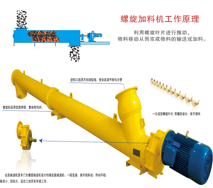 簡介:螺旋加料機(jī)又稱螺旋喂料機(jī),主要利用螺旋的輸送功能完成,物料的添加和輸送。