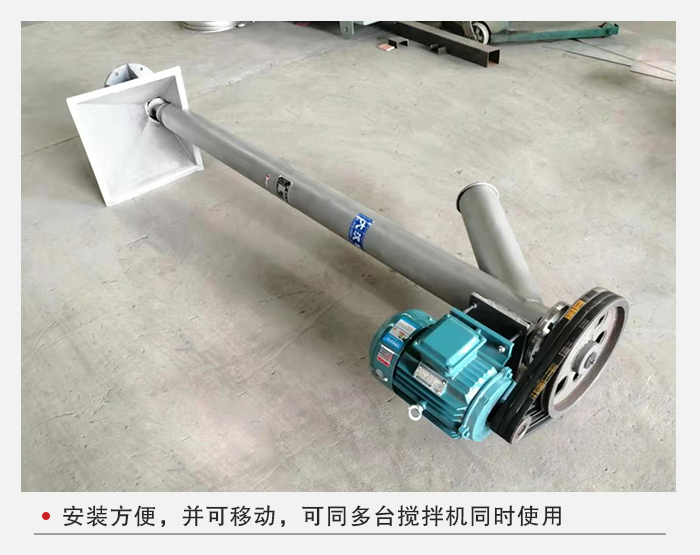 1、安裝方便,并可移動,如多臺攪拌機(jī)使用同一種料,只需一臺上料機(jī)可同時供多臺拌料機(jī)上料,免除人工加料的麻煩,使加料工作變的安全,更省時、更省力。