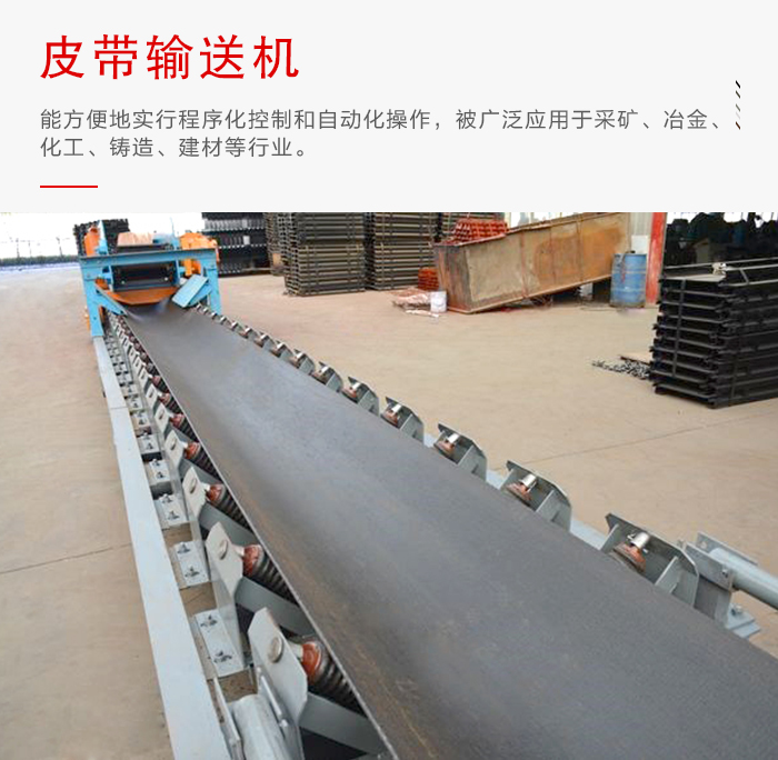 皮帶輸送機又叫膠帶輸送機,能方便地實行程序化控制和自動化操作,皮帶輸送機廣泛應用于采礦、冶金、化工、鑄造、建材等行業的輸送和生產流水線以及水電站建設工地和港口等生產部門,主要用于連續或間歇運動來輸送100KG以下的物品或粉狀、顆狀物品,其運行高速、平穩,噪音低,并可以上下坡傳送,具有輸送能力強,輸送距離遠,結構簡單易于維護的優勢。