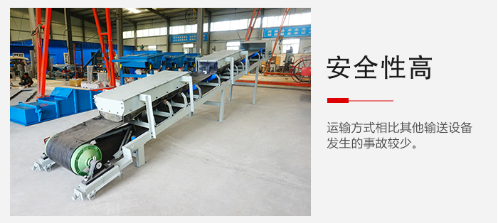 皮帶輸送機具有很高的安全性, 需要的生產人員很少,其他運輸方式相比發生事故的機會比較少。不會因大塊物料掉下來砸傷人員或由于大型笨重的車輛操縱失靈而引起事故。