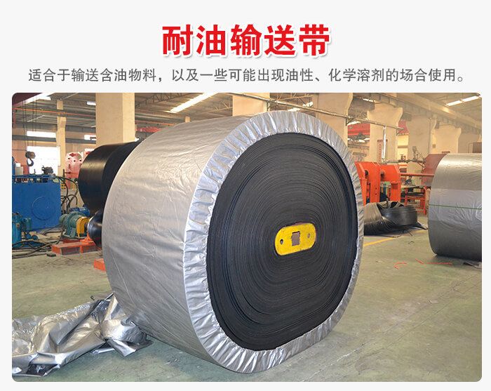 耐油輸送帶全棉帆布、尼龍帆布、聚酯帆布,經過壓延、成型、硫化等工序精制而成,具有比較好的耐油性,適合于輸送含油物料,以及一些可能出現油性、化學溶劑的場合使用。